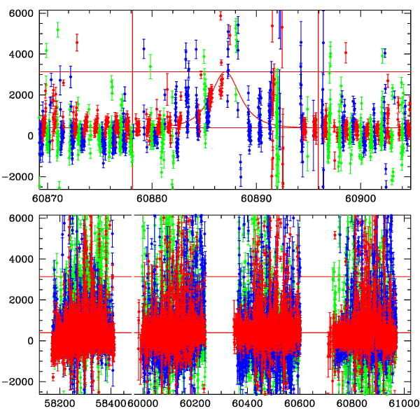 ● CTIO ● SAAO ● SSO ● Largest local dchi2 value (same as site of EVENT name) ● Local dchi2 is less than 0.05 times global dchi2 KMTA42_I.diapl KMTC42_I.diapl KMTS42_I.diapl gzipped tar file for all DIA data | |