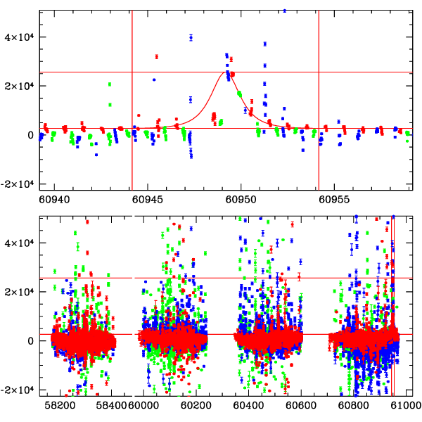 ● CTIO ● SAAO ● SSO ● Largest local dchi2 value (same as site of EVENT name) ● Local dchi2 is less than 0.05 times global dchi2 KMTA42_I.diapl KMTC42_I.diapl KMTS42_I.diapl gzipped tar file for all DIA data | |