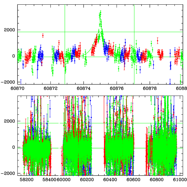 ● CTIO ● SAAO ● SSO ● Largest local dchi2 value (same as site of EVENT name) ● Local dchi2 is less than 0.05 times global dchi2 KMTA42_I.diapl KMTC42_I.diapl KMTS42_I.diapl gzipped tar file for all DIA data | |