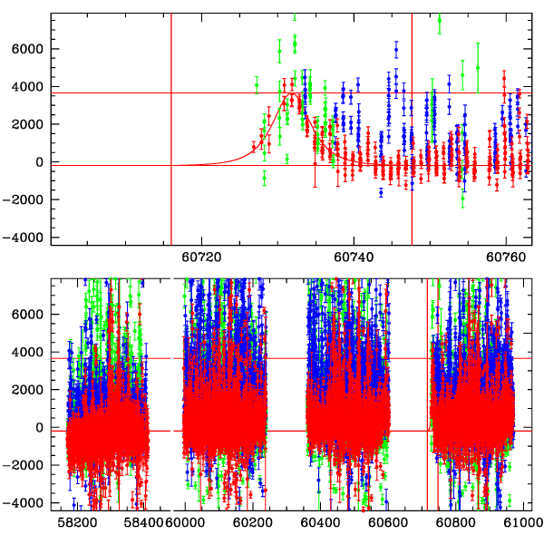 ● CTIO ● SAAO ● SSO ● Largest local dchi2 value (same as site of EVENT name) ● Local dchi2 is less than 0.05 times global dchi2 KMTA43_I.diapl KMTC43_I.diapl KMTS43_I.diapl gzipped tar file for all DIA data | |