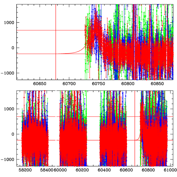● CTIO ● SAAO ● SSO ● Largest local dchi2 value (same as site of EVENT name) ● Local dchi2 is less than 0.05 times global dchi2 KMTA43_I.diapl KMTC43_I.diapl KMTS43_I.diapl gzipped tar file for all DIA data | |