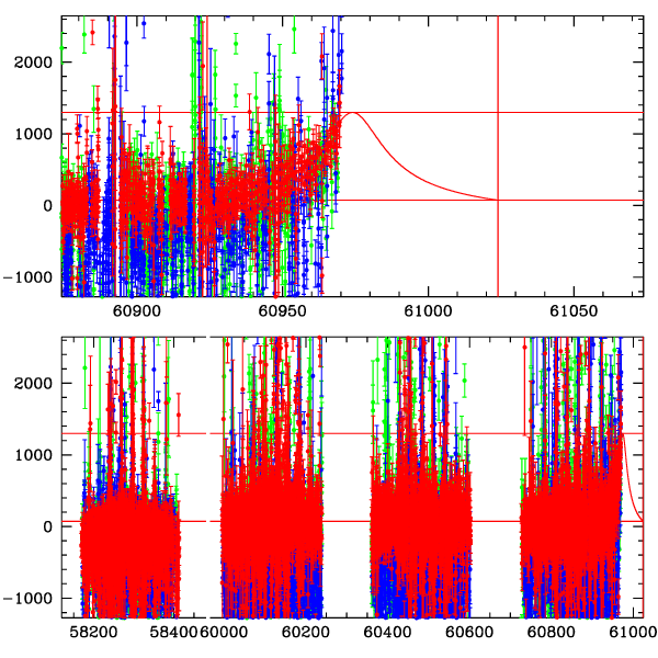 ● CTIO ● SAAO ● SSO ● Largest local dchi2 value (same as site of EVENT name) ● Local dchi2 is less than 0.05 times global dchi2 KMTA43_I.diapl KMTC43_I.diapl KMTS43_I.diapl gzipped tar file for all DIA data | |