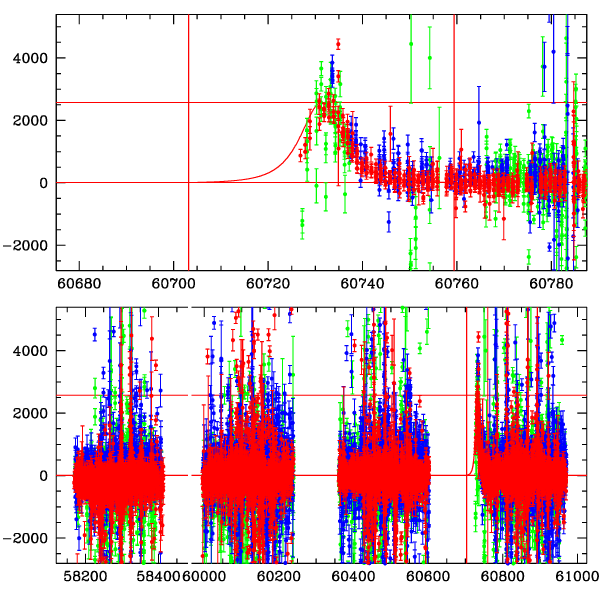 ● CTIO ● SAAO ● SSO ● Largest local dchi2 value (same as site of EVENT name) ● Local dchi2 is less than 0.05 times global dchi2 KMTA43_I.diapl KMTC43_I.diapl KMTS43_I.diapl gzipped tar file for all DIA data | |