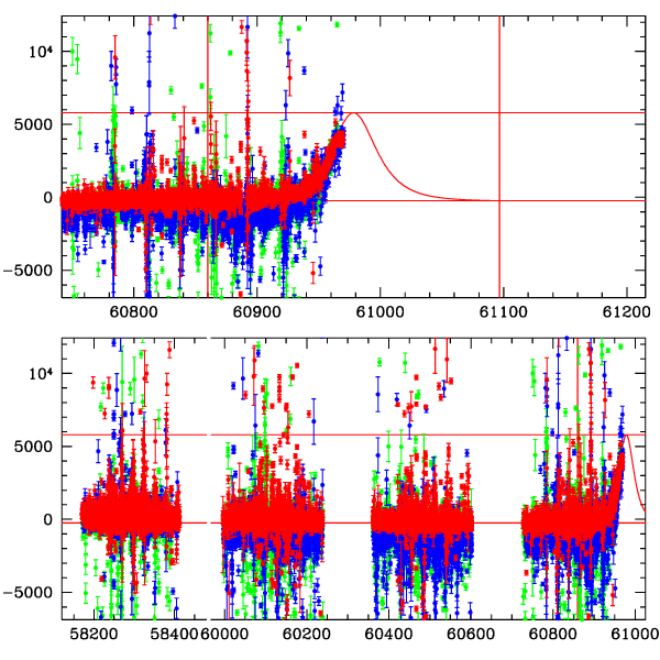 ● CTIO ● SAAO ● SSO ● Largest local dchi2 value (same as site of EVENT name) ● Local dchi2 is less than 0.05 times global dchi2 KMTA43_I.diapl KMTC43_I.diapl KMTS43_I.diapl gzipped tar file for all DIA data | |
