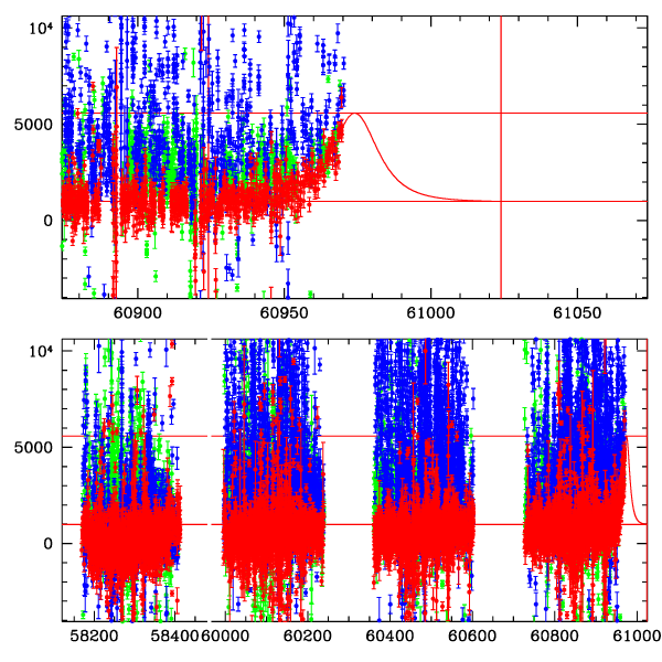 ● CTIO ● SAAO ● SSO ● Largest local dchi2 value (same as site of EVENT name) ● Local dchi2 is less than 0.05 times global dchi2 KMTA43_I.diapl KMTC43_I.diapl KMTS43_I.diapl gzipped tar file for all DIA data | |