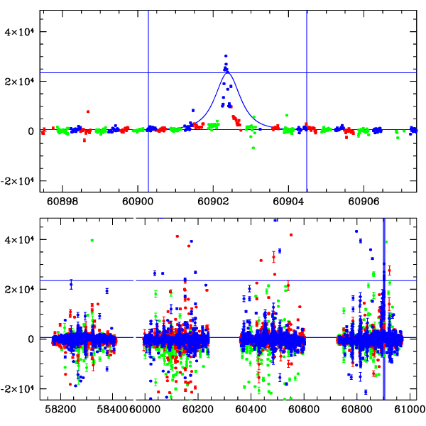 ● CTIO ● SAAO ● SSO ● Largest local dchi2 value (same as site of EVENT name) ● Local dchi2 is less than 0.05 times global dchi2 KMTA43_I.diapl KMTC43_I.diapl KMTS43_I.diapl gzipped tar file for all DIA data | |
