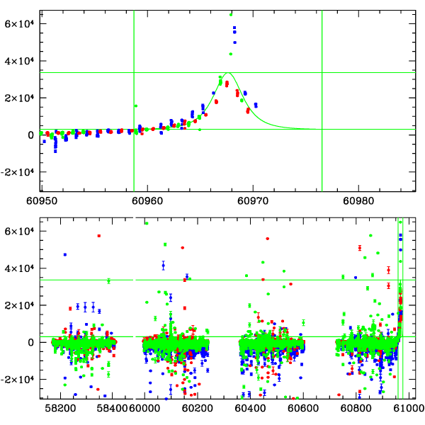 ● CTIO ● SAAO ● SSO ● Largest local dchi2 value (same as site of EVENT name) ● Local dchi2 is less than 0.05 times global dchi2 KMTA43_I.diapl KMTC43_I.diapl KMTS43_I.diapl gzipped tar file for all DIA data | |