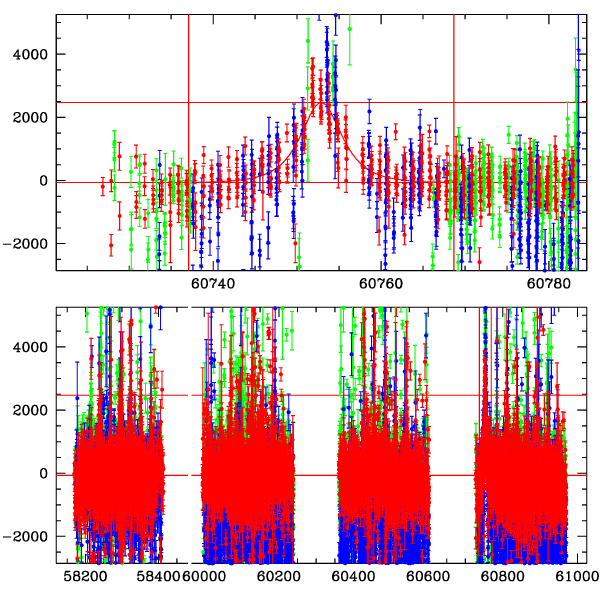 ● CTIO ● SAAO ● SSO ● Largest local dchi2 value (same as site of EVENT name) ● Local dchi2 is less than 0.05 times global dchi2 KMTA43_I.diapl KMTC43_I.diapl KMTS43_I.diapl gzipped tar file for all DIA data | |