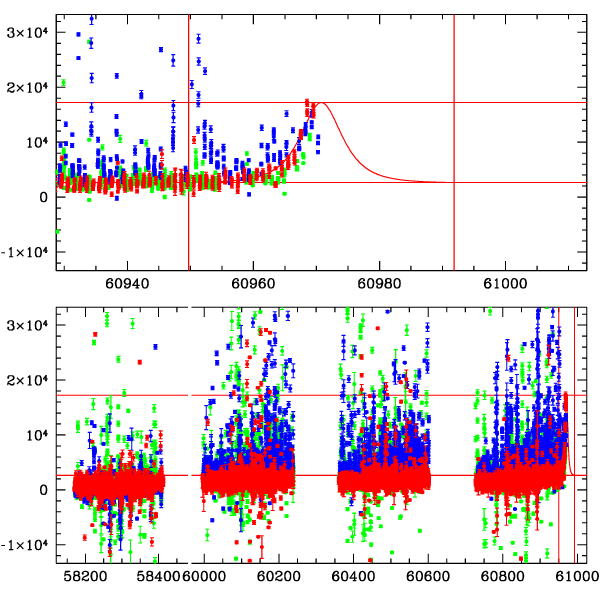 ● CTIO ● SAAO ● SSO ● Largest local dchi2 value (same as site of EVENT name) ● Local dchi2 is less than 0.05 times global dchi2 KMTA43_I.diapl KMTC43_I.diapl KMTS43_I.diapl gzipped tar file for all DIA data | |