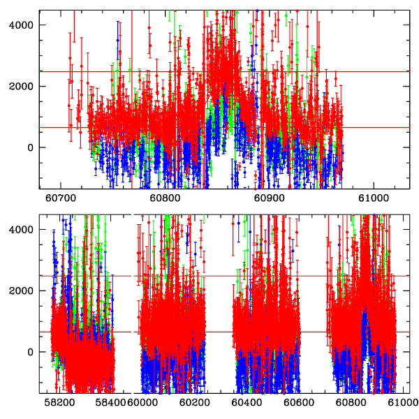 ● CTIO ● SAAO ● SSO ● Largest local dchi2 value (same as site of EVENT name) ● Local dchi2 is less than 0.05 times global dchi2 KMTA19_I.diapl KMTC19_I.diapl KMTS19_I.diapl gzipped tar file for all DIA data | |