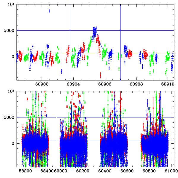 ● CTIO ● SAAO ● SSO ● Largest local dchi2 value (same as site of EVENT name) ● Local dchi2 is less than 0.05 times global dchi2 KMTA43_I.diapl KMTC43_I.diapl KMTS43_I.diapl gzipped tar file for all DIA data | |