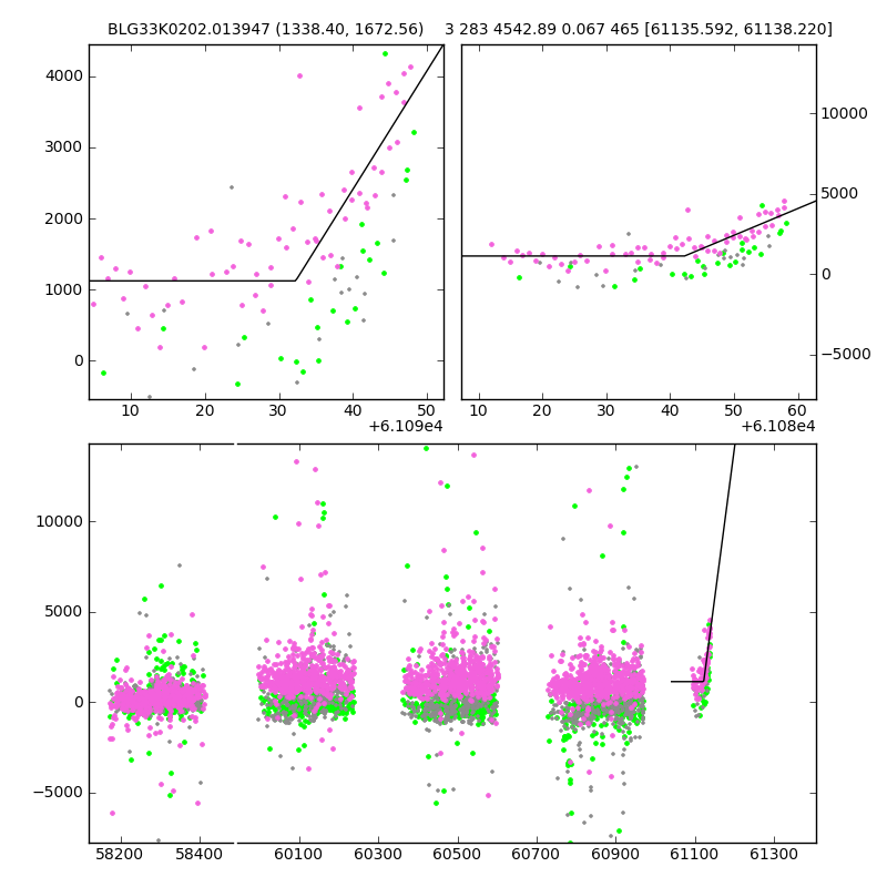 ● CTIO ● SAAO ● SSO ● Largest local dchi2 value (same as site of EVENT name) ● Local dchi2 is less than 0.05 times global dchi2 KMTA33_I.diapl KMTC33_I.diapl KMTS33_I.diapl gzipped tar file for all DIA data |